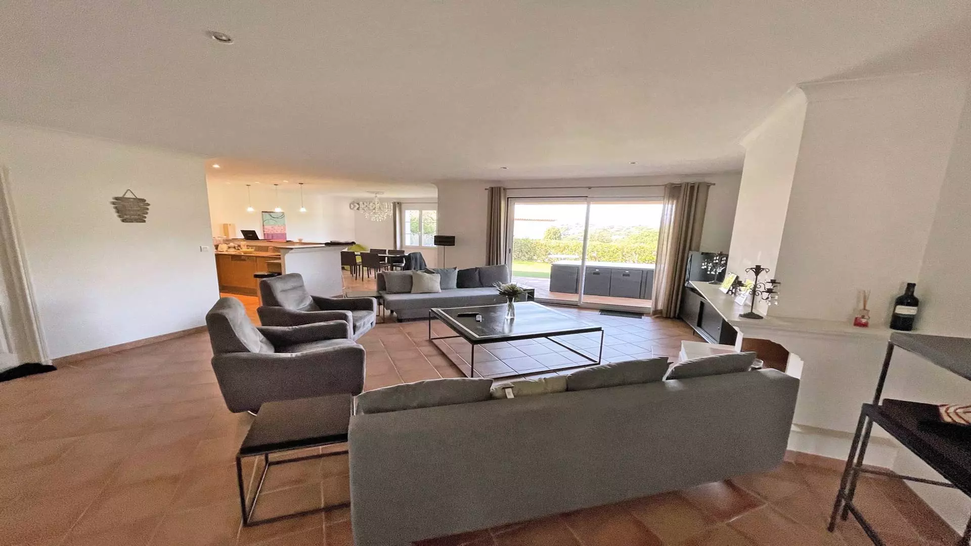 - Air-conditioned living/dining room with sofas including 1 sofa bed (140cm), armchairs, flat screen television, decorative fireplace, dining area and direct access to the terrace