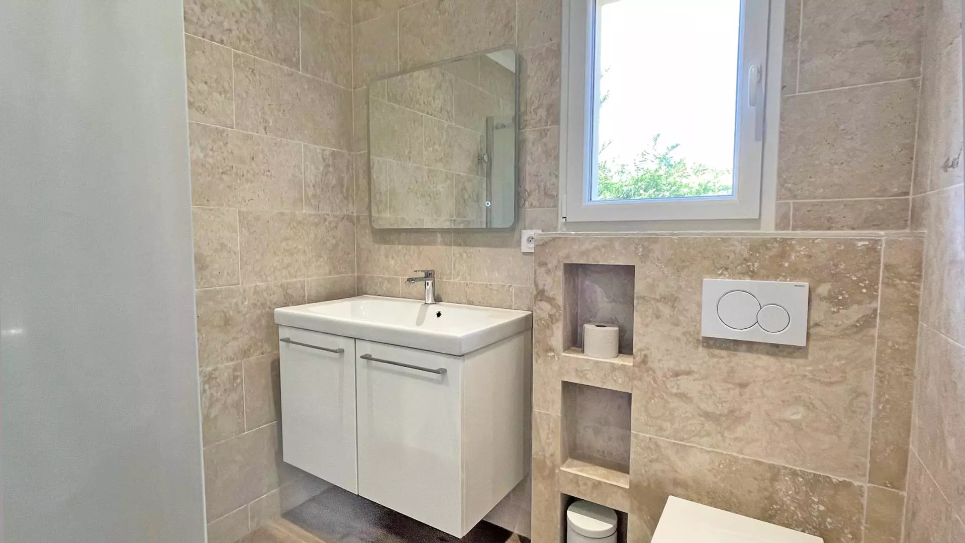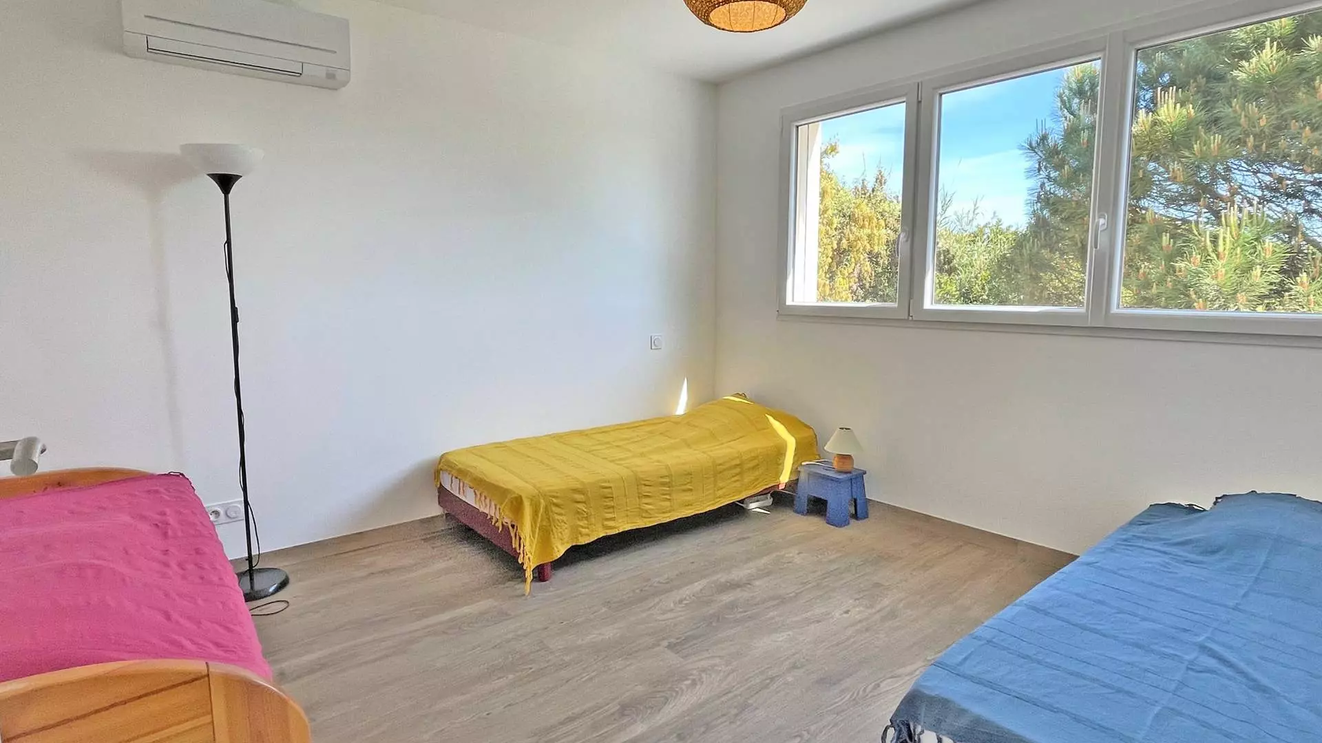 - Bedroom 2: 3 single beds (3x90) with storage - Air-conditioned