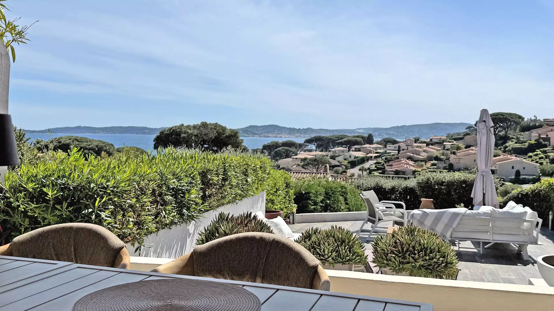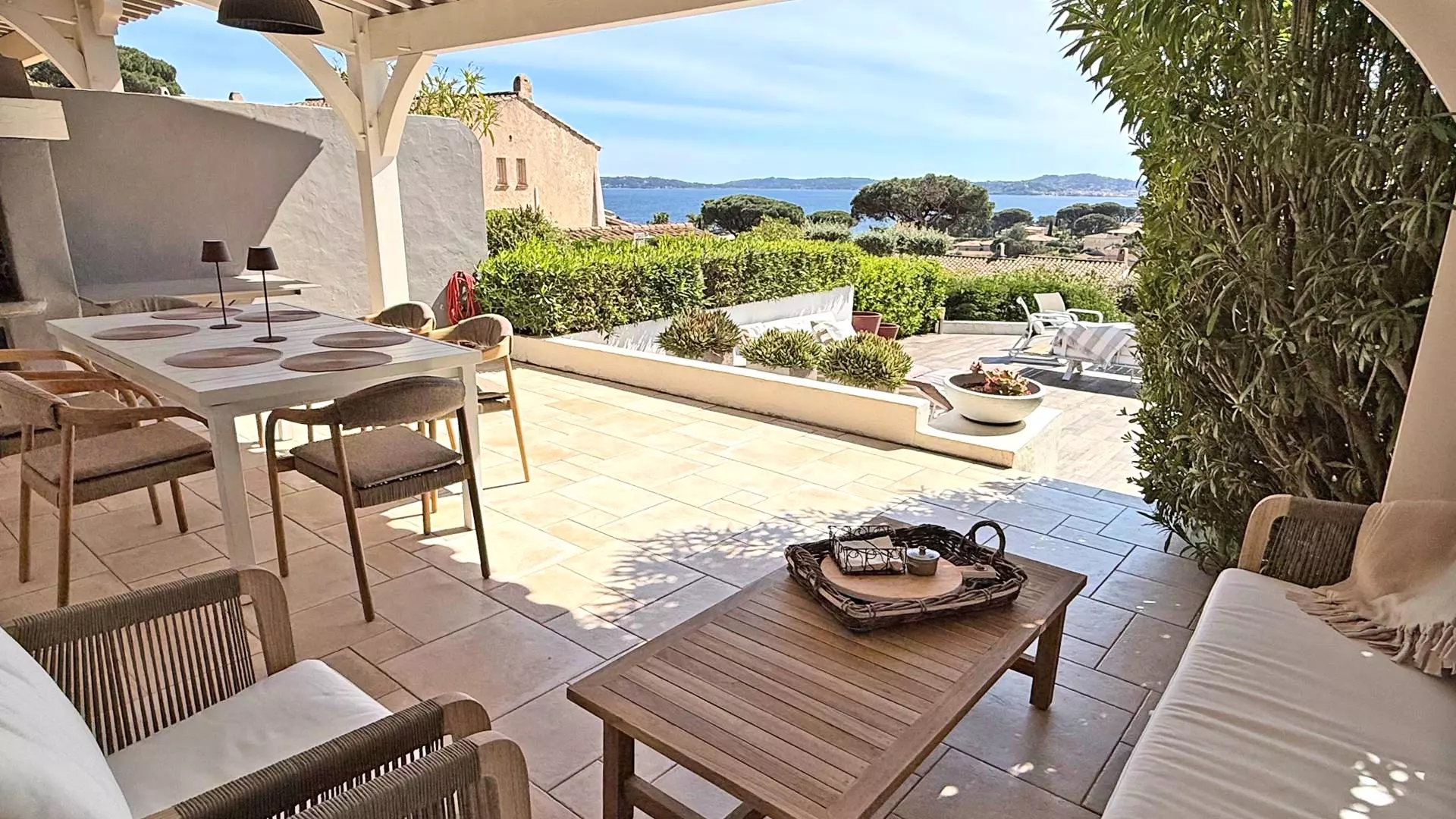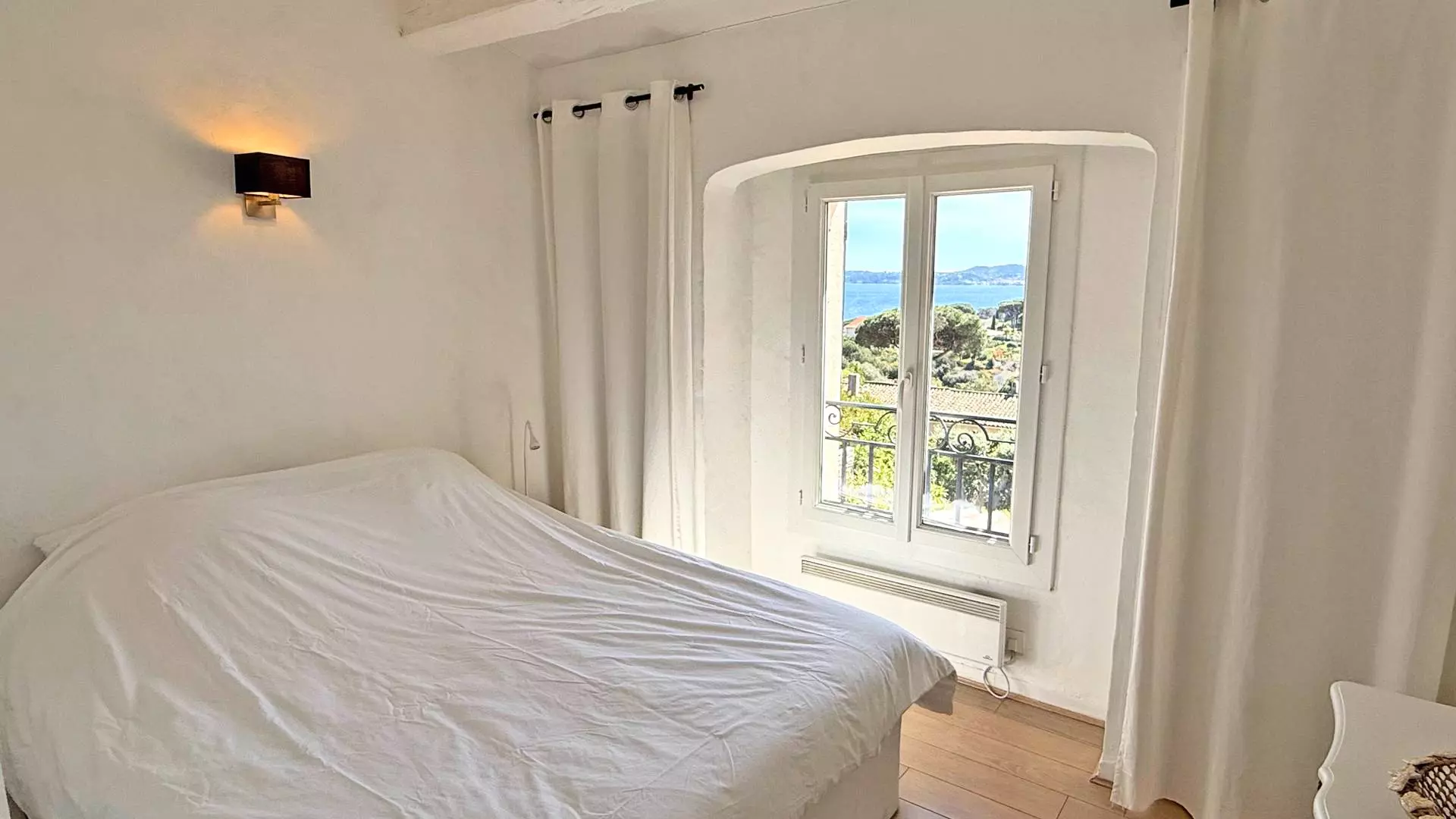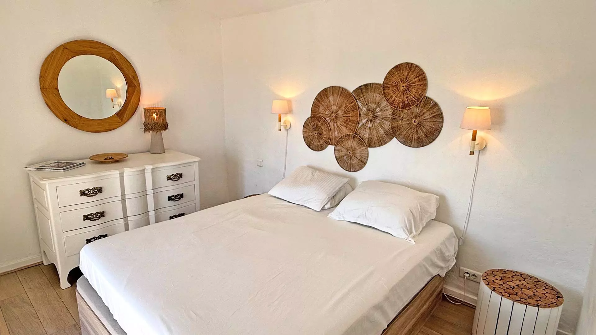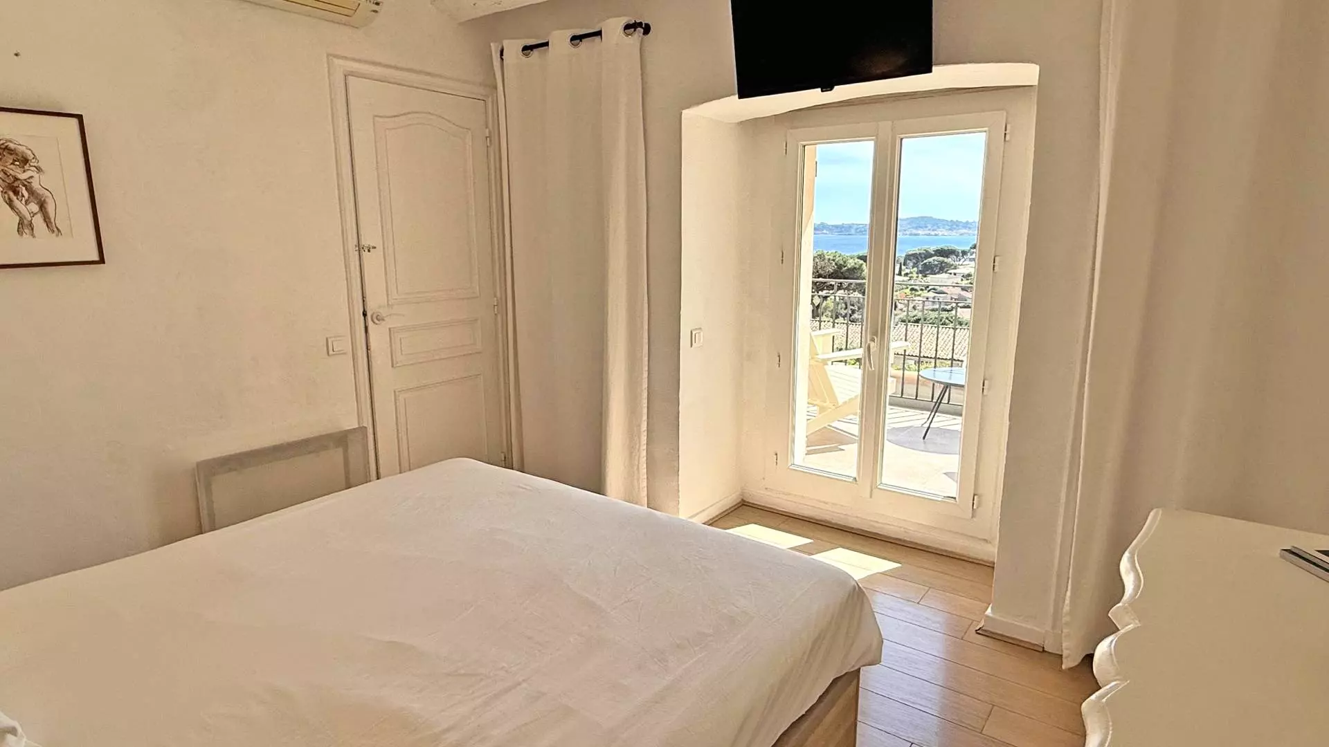 - Bedroom 1: 160cm double bed with air conditioning and storage - Tropezian terrace with sea view