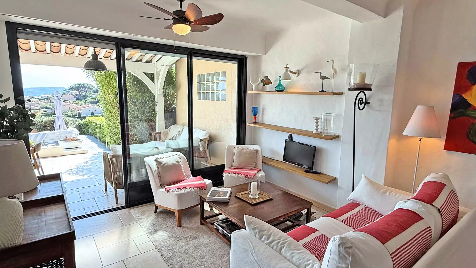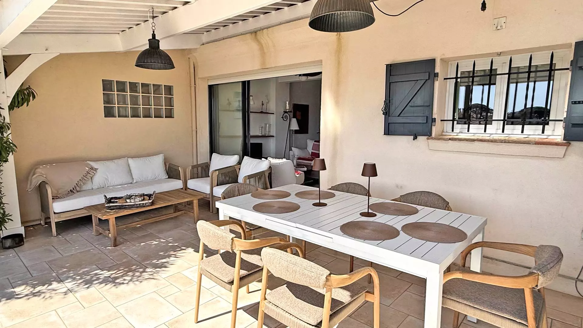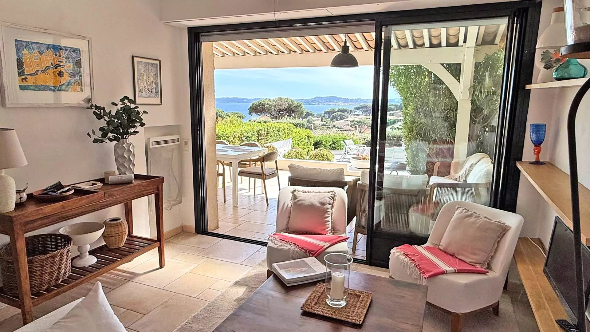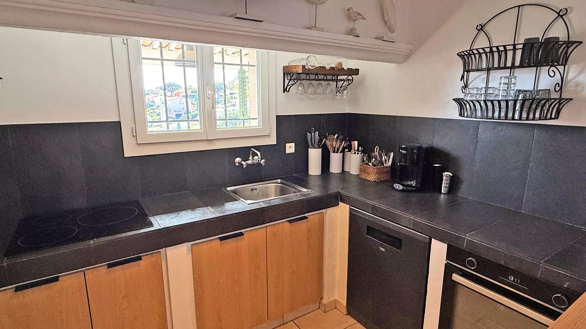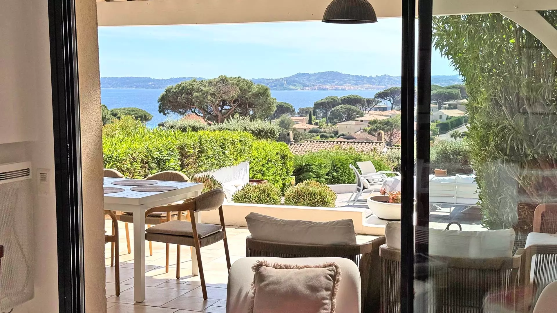 - Bedroom 1: 160cm double bed with air conditioning and storage - Tropezian terrace with sea view