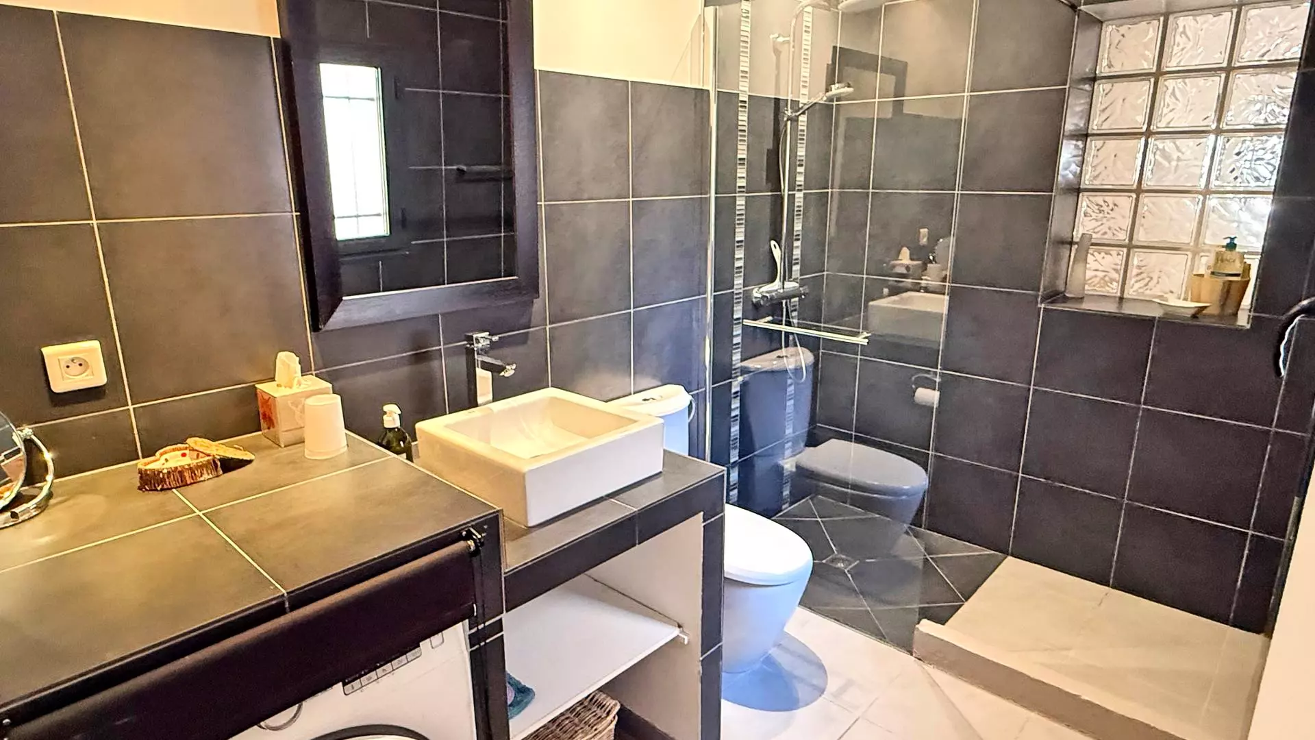 - Entrance with American-style fitted kitchen (ceramic hob, oven, microwave, fridge-freezer, dishwasher, Nespresso machine, wine cellar, etc.)