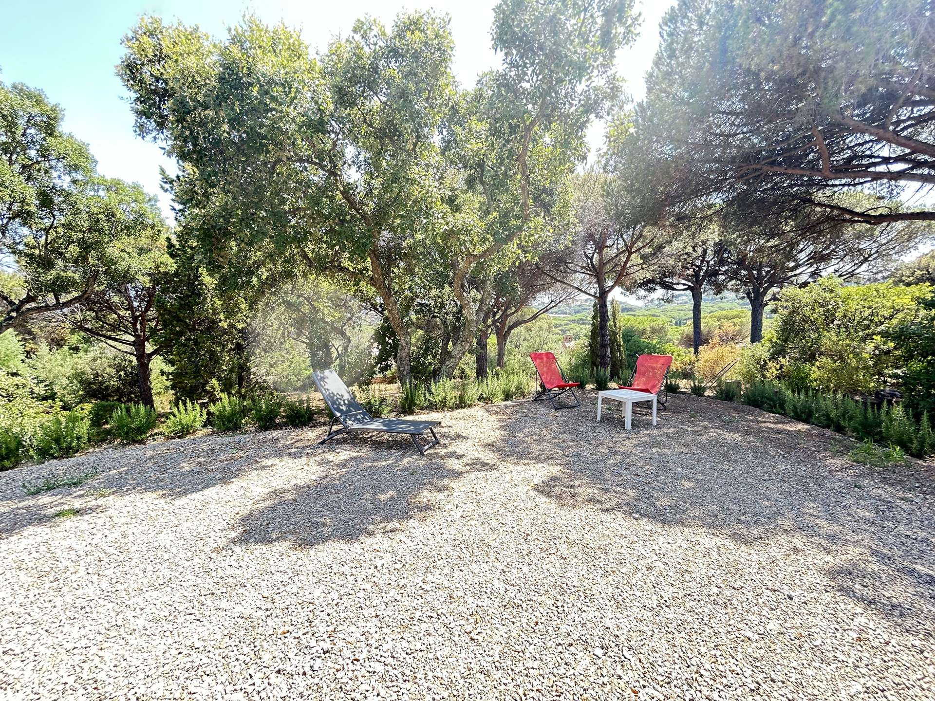 The garden also features an esplanade with sea views, shaded and equipped with sun loungers and a hammock—ideal for relaxing while enjoying views of the Pointe des Sardineaux.