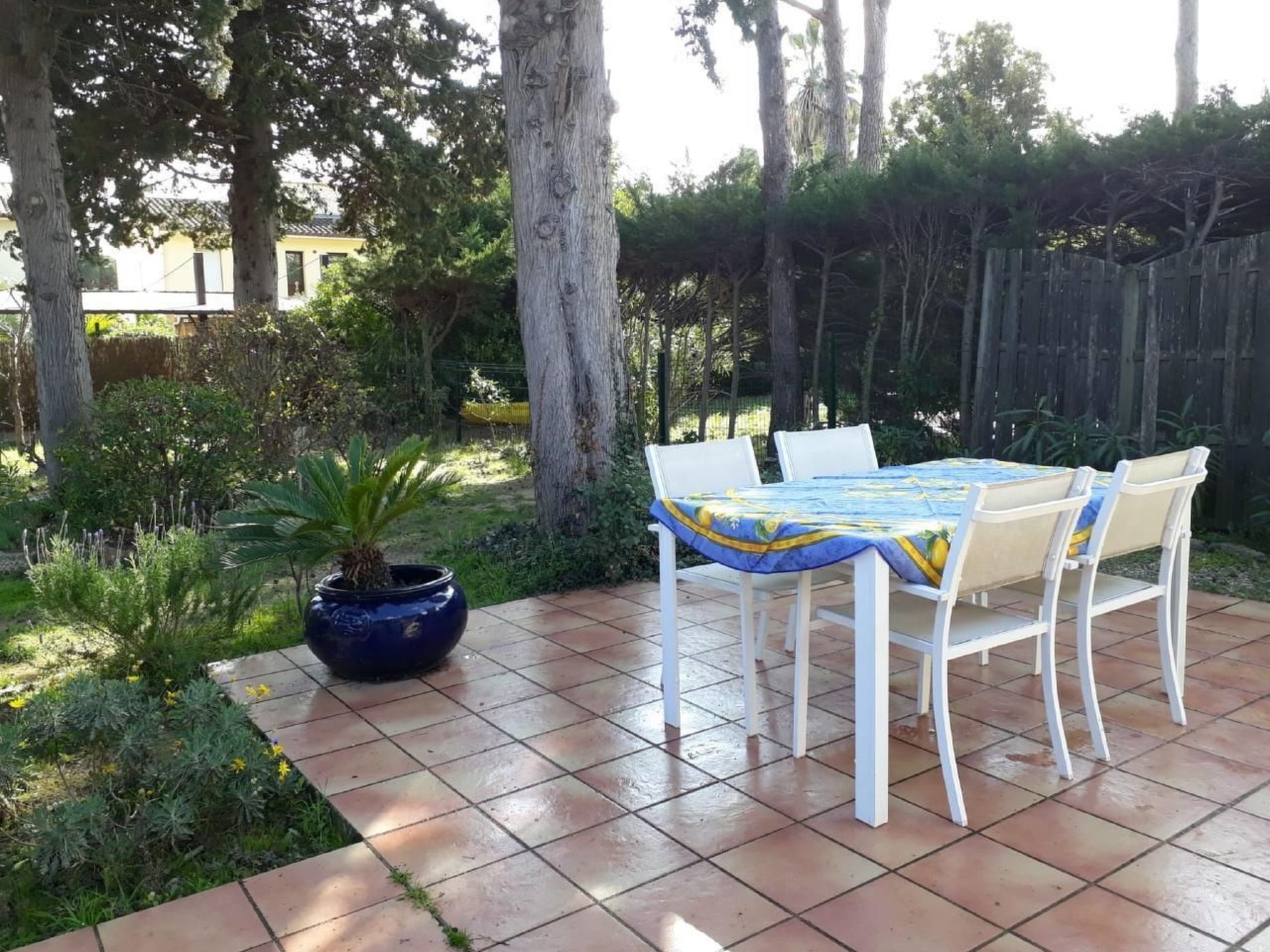 Garonnette 5 can accommodate up to four people. It has a master bedroom with a double bed (1.6 x 2 m) and a children's room with a bunk bed (2x 0.90 x 1.90 m). The kitchen is fully equipped. The living-dining room has a cosy couch (extendable 1.4 x 1.9 m), as well as satellite TV and music player. The bathroom has a shower and a separate toilet. The small villa is equipped with air conditioning and a washing machine. A parking space is available for holiday guests. Enjoy the wonderful garden (fenced) and the adjoining terrace with barbecue. The outdoor area offers plenty of space to play or relax. The many trees provide excellent shade in summer. Deckchairs are available for you!